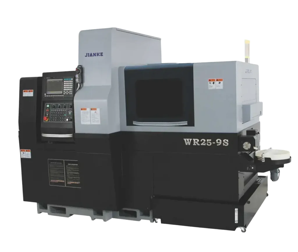 Jianke Machinery is proud to present its new 9-axis CNC lathe WR25-9S with two independently mounted tool rows on each side that enable simultaneous milling and drilling operations. It also includes a sub-spindle Y2 axis that allows simultaneous operation of both the main spindle and sub-spindle. LM port guideways and screws ensure high precision and stability.